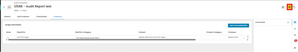 From the list, select the audit you want to certify. In the Attachments section in the Audit screen, once the certificate has been issued, the system automatically generates the Audit PDF.