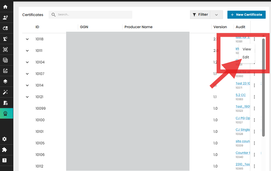 To view the Audit PDF in SCP, search for the relevant GGN (GLOBALG.A.P. Number).