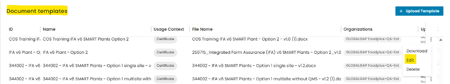 Please note that only the latest version of a certificate can be extended. In the example below, the 2nd version of the certificate has the edit option: