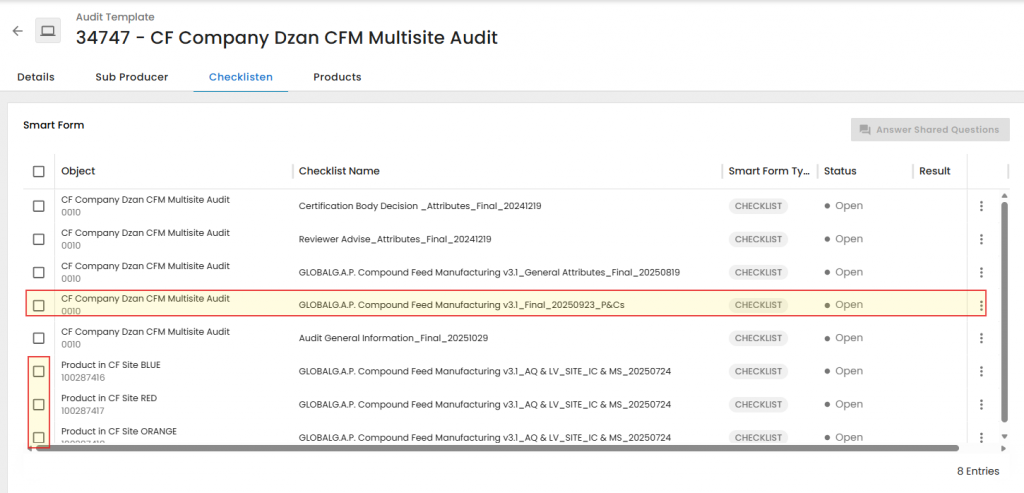 If there are several production sites, CB must register each site for every product. This means the same CFM site (GLOBALG.A.P. Compound Feed Manufacturing - Scope Registration (Site)) may appear multiple times with different names or products, similar to IFA registration for multisite producers.