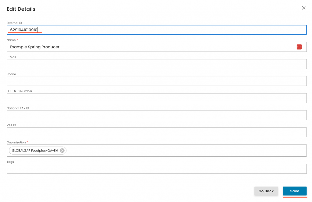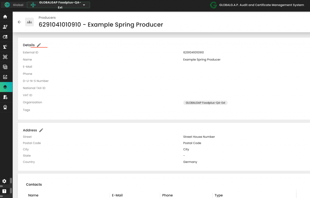 To replace the GGN with the GLN, please use the pencil icon at the producer's profile: