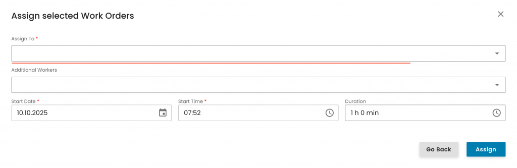 In either option, a pop-up window opens, allowing you to select the auditor and assign the audit. You can also select the preferred audit date, start time and duration. This information can be changed later on in case of need: