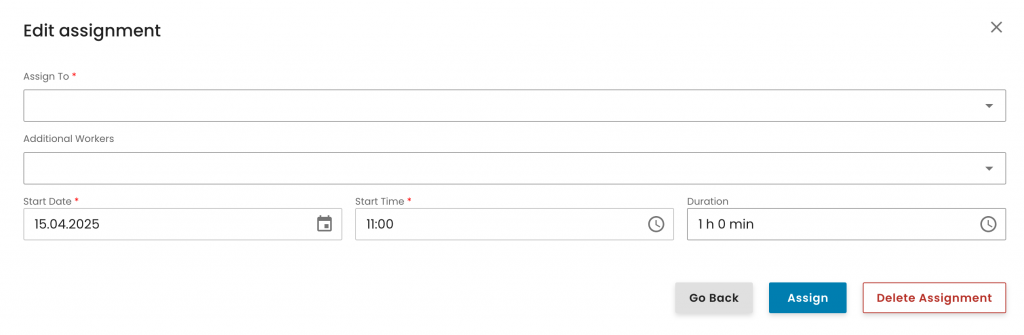 By "Delete Assignment", you can remove this audit from the auditor's mobile app, or you can directly assign it to another auditor by selecting her/him as explained above and clicking on "Assign":