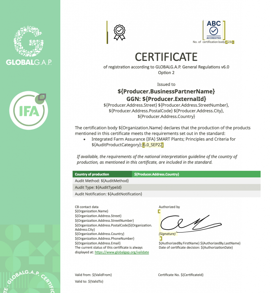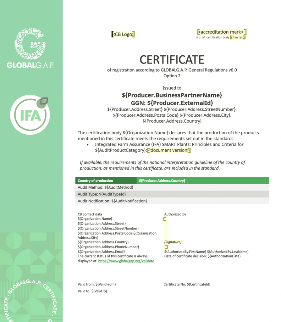 The process will be very similar to the process presented for IFA. In case of benchmarked standards, there will be less information to be completed before issuing a certificate (The P&C checklist of the benchmarked schemes shall not be filled out in the new GLOBALG.A.P. IT platform).