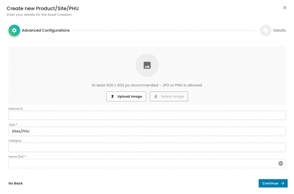 Note: Creating sites and their associated products is a one-time setup. This process does not need to be repeated for future audits or assessments.