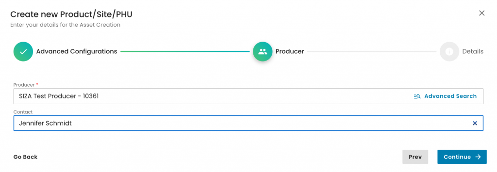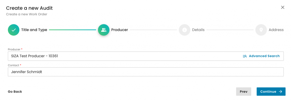 To proceed with the modification audit, you must first create the producer’s site(s) and product(s).
