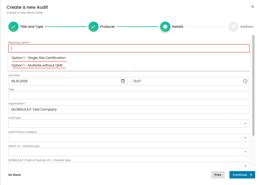 A work order is either a full or a part of an audit. Meaning it can be the complete audit for an option 1, or it can be, e.g., only the Certification Scope Management work order, or the QMS audit for a PG or a producer member audit/assessment.