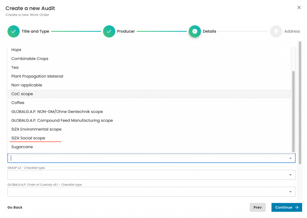 For GLOBALG.A.P. Compound Feed Manufacturing v3.1, the "Audit product category" "GLOBALG.A.P. Compound Feed Manufacturing Scope" must be selected. See here a detailed description of how to set up a Non-GM audit.