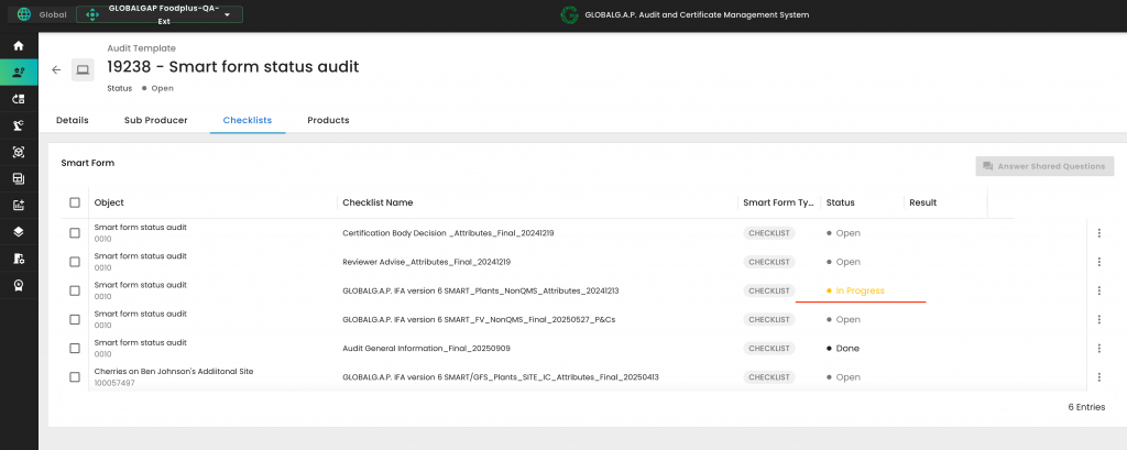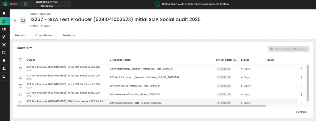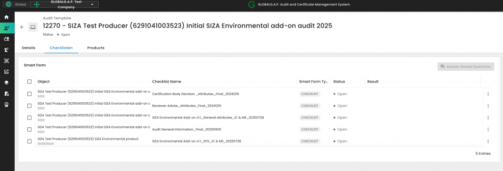 With this, the system triggers the appropriate smartforms, which can be found under the checklist tab. The smart forms have to be filled out as explained in this recording. Please not you can also user the Attribute mass entry feature.