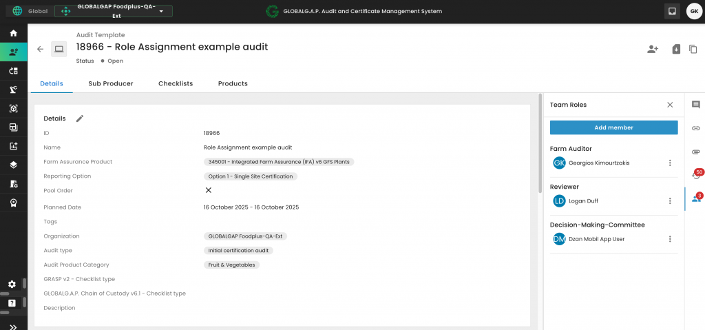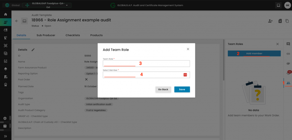 After preparing the audit, you shall assign the relevant roles by following the steps outlined below:
