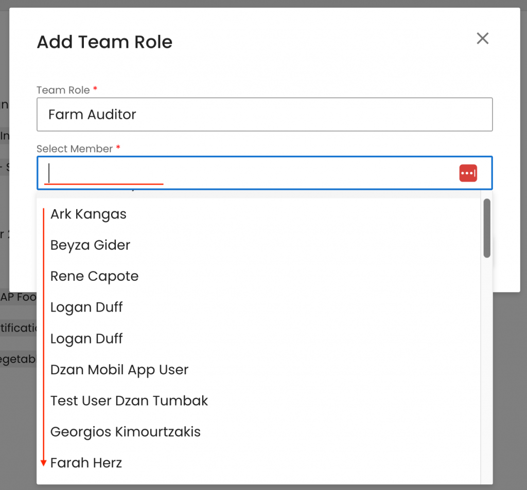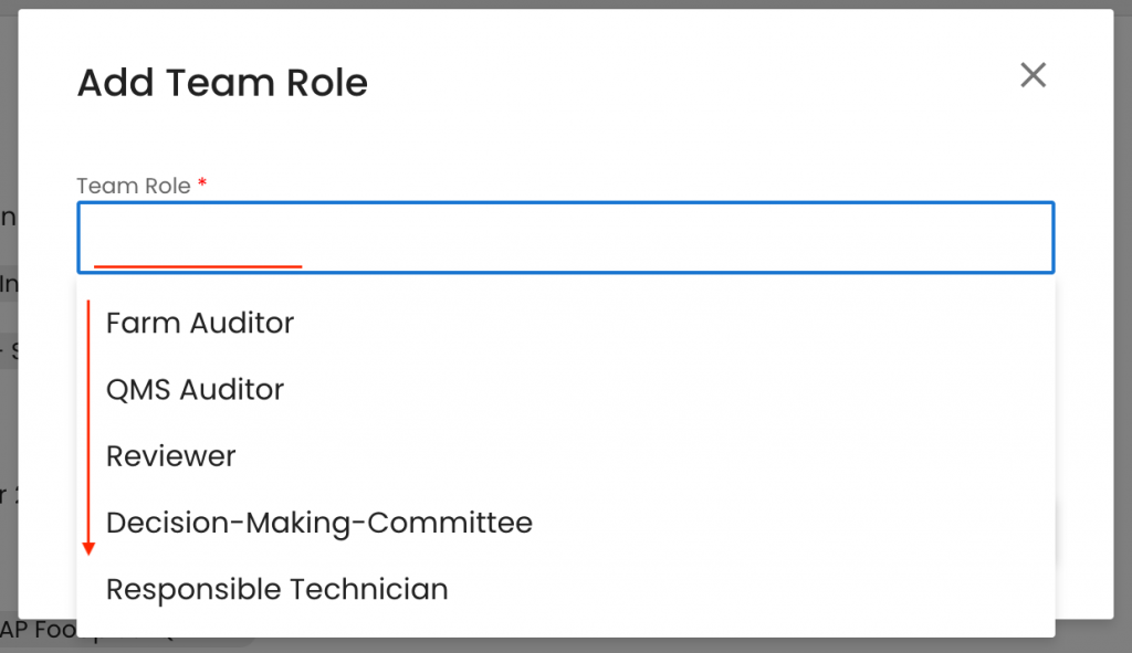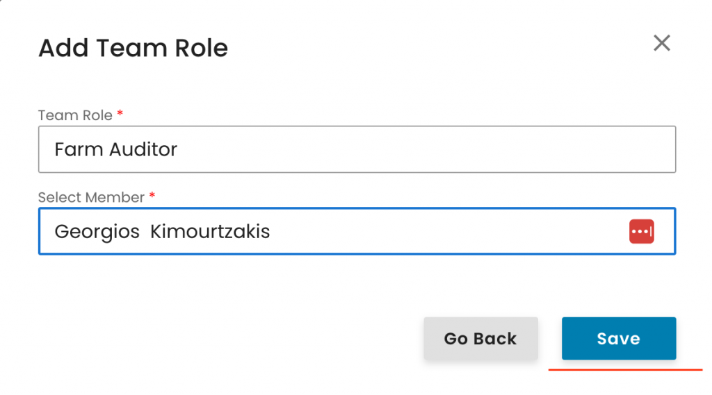 By clicking on the "Team Roles" field, you can select the applicable role: