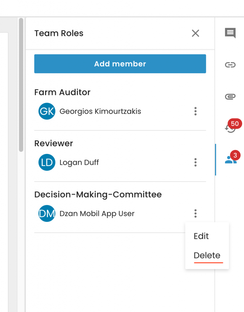 In case needed, roles can be removed, and new CB staff members can be assigned to the audit. To remove a role, click on the three dots and "Delete":