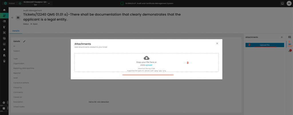 If you're using a device with a camera, you can capture images by clicking on 'Images'. These photos will be automatically attached to the NC ticket, serving as evidence of the non-conformity.